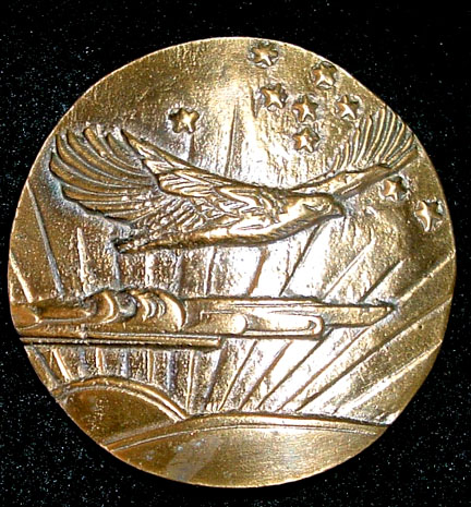 Brass eagle in flight belt buckle manufactured in 1970. Buckle measures 3 inches wide by 1-7/8 inches tall and will accept a 1-1/2 inch wide belt.