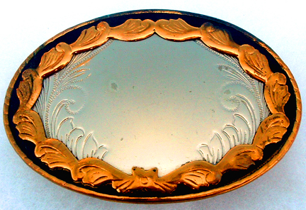 Beautiful gold plated and nickel oval Buckle with gold, black and gold rope designs. Classy buckle . Buckle measures 3-1/4 inches wide by 2-1/8 inches tall and will accept a 1-5/8 inch wide belt.