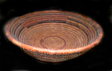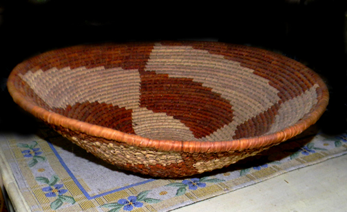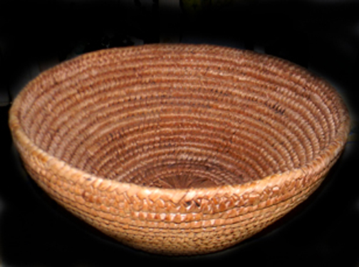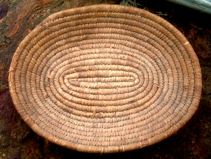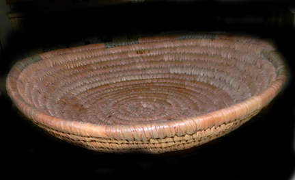 Tightly woven native american gathering basket 16 inches diameter at top, 4-5/8 inches tall, excellent condition.