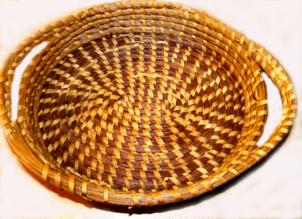 Excellent condition, Cherokee Sweetgrass Indian Basket, good patina and design; exceptionally tight weave; 10 inches in length, 8 inches wide and 2 inches deep. Usually ships in 3-4 business days. SORRY, THIS ONE IS SOLD. PLEASE MAKE ANOTHER SELECTION.