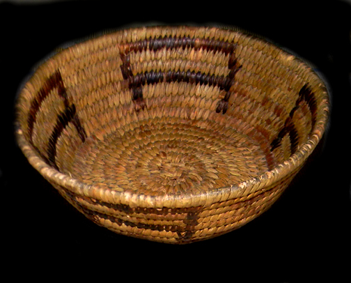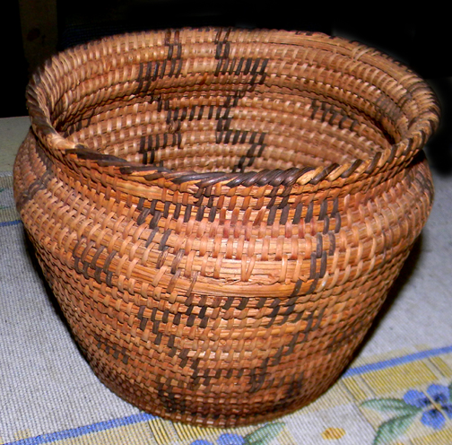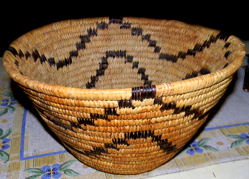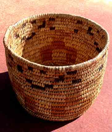 Antique native american basket from Southern California, 6-3/4 inches in diameter, 3-1/2 inches tall. Wonderful basket, very tight weave, excellent condition.
