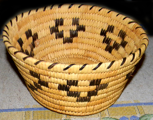Popago basket from the Popago reservation in Southern Arizona, 6-3/4 inches in diameter, 3-1/2 inches tall. Wonderful basket, excellent condition.