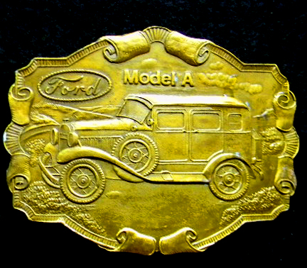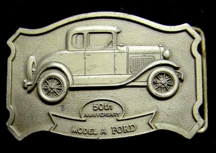 This is a vintage belt buckle commemorating the 50th anniversary of the introduction of the Ford Model A. Good looking buckle measures approx. 3-1/2 inches wide by 2-1/2 inches high..