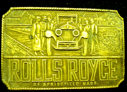 This is a vintage, solid brass rectangular belt buckle commemorating the Rolls Royce automobile. Great collector's buckle.
