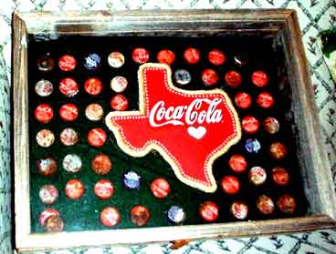 Neat looking display of Coca Cola bottle caps in a barnwood frame display case measuring 13" x 17" and approximately 3" deep.