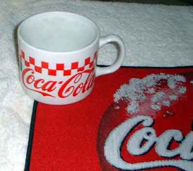 Neat checker square coca cola coffee mug. Large mug measures four inches in diameter. Perfect for your coffee drinking coke collector!