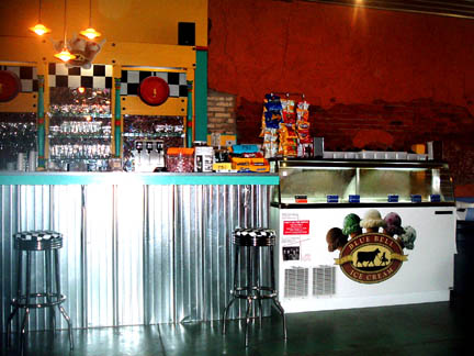 Walk past the fantastic ice cream fountain into a 50's style dining area and have a seat at one of the country tables or at the fountain counter. You can order up a delightful Roast Beef on Rye or other great Deli selections or enjoy any of their traditional ice cream Fountain specialities like ice cream cones (12 flavors currently available), floats, shakes, sundaes malts and bananna splits.