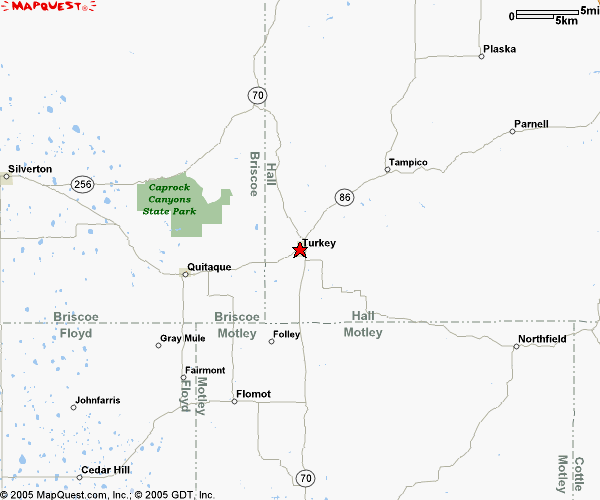 Present-day Turkey is located at the intersection of State Highways 86 and 70, on the Burlington Northern railroad line in the southwestern corner of Hall County.