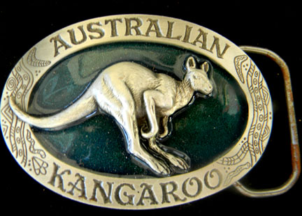 Nice collectible 3D pewter belt buckle featuring the kangaroo. Buckle, which is part of the Australian Animal Series, is 3-3/8 inches wide, 2-3/8 inches tall, and accepts a belt up to 1-5/8 inches wide. Usually ships in 2-3 business days.