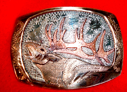 Classy Gold and Silver Plate Elk Buckle by Crumrine