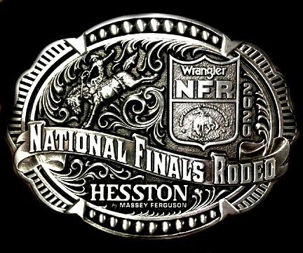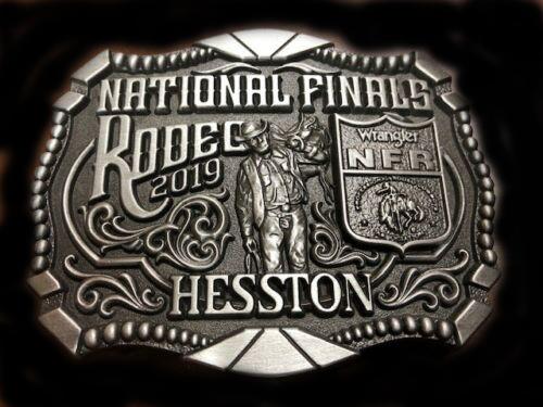 2019 Hesston NFR Belt Buckle Pewter Adult Size manufactured by Montana Silversmiths. SORRY, THIS ONE IS SOLD OUT. PLEASE MAKE ANOTHER SELECTION.