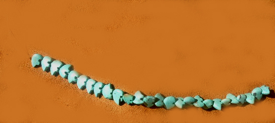String of drilled turquoise bears, each bear approx. 1/4 inches in height. Great for jewelry projects.
